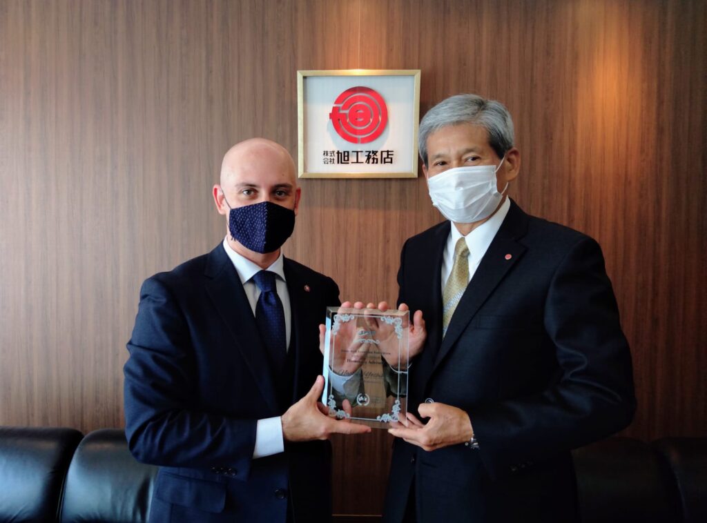 株式会社旭工務店の代表取締役会長 吉弘直彦氏に、日伊経済連合会の名誉顧問にご就任いただくことになり、本日令和3年10月27日、日伊経済連合会 会長 ディサント・ダニエレより、委嘱状が手渡されました。