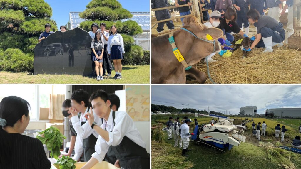 本校は、農作物栽培や家畜の飼育、食品加工などの実験・実習などを通して「命を守り、育てる力」を身に付けるとともに、「自然との関わり」、「協働の楽しさ」について学べる場所ともなっています。
